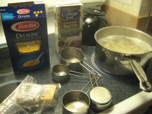 Short Pasta (my preference is ditalini or pastina, but you can use anything short – orzo, shells, fusilli)