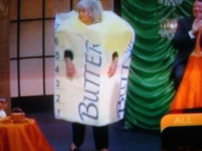 Ok I know, Sandra’s outfit is anti-climactic after that buildup, but Martha’s insanity totally makes up for it, right? And you know that pumpkin Sandra is clutching is made out of hot dog buns, onion soup mix, and three pounds of packaged icing bound together with vodka.