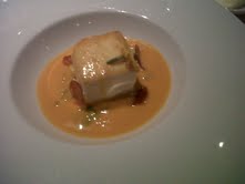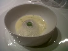 One has two options at Menton: a four course Prix Fixe or  a seven course Chef’s Tasting. While I’m sure the Chef’s Tasting is unparalleled, the prix fixe meal that we had actually turned out to be six courses- I couldn’t imagine stuffing one more bite into my mouth. It was one of those marathon meals, when you slowly drink wine and talk about everything and nothing, and periodically look up to a bevy of handsome wait staff, holding plates and silverware and curved pitchers full of sauce, who then, in unison, serve you.