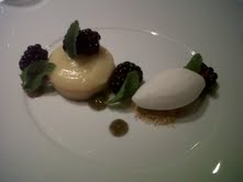 As with most tasting menus, by the time we got to dessert our palates were exhausted.  Frankly, I was breathing hard I had eaten so much. But we pressed on- I had the Lemon Tart with blackberries and yogurt sorbet, which was lovely. However, I wish I’d gotten the Compressed Bartlett Pear, it was lighter and more unique.