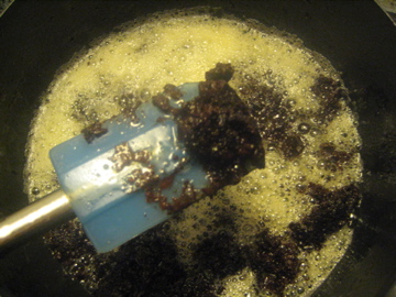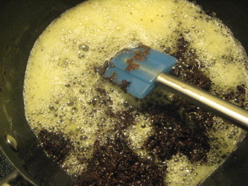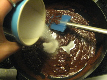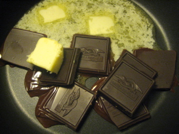 Don’t get distracted by your dirty dishes or your blackberry or your pile of mail or your baking-induced ADD. Not that you would, but I did. Which led to the chocolate being a teeny bit burned already after step 1.
