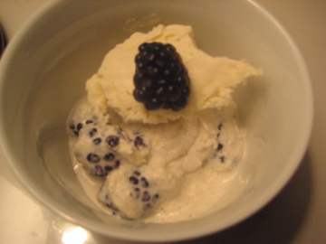 All day yesterday I had visions of an ice cream sundae. A big, fat, fluffy ice cream sundae with chocolate sauce and berries and whipped cream. As the day wore on I decided that instead of just buying some chocolate sauce and making regular whipped cream, I was going to make a real production of this sundae. I was going to make fancy homemade chocolate sauce and fresh rose sugared whipped cream and vanilla ice cream with blackberries mixed in. Oh yeah.
