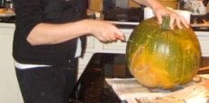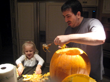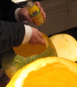 Step 3. Clean your pumpkins. This is the hardest and most annoying part, though it does yield pumpkin seeds. If you happen to run across a small blonde urchin that can help you with this step, all the better.