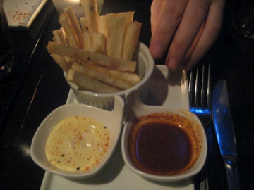 If you know me, you’ve heard my rant about sweet potato fries. In short, they annoy me. I love a good french fry, I really do. But sweet potato fries are not fries, and even if I agreed to give them the “fry” designation they are rarely cooked correctly. The one exception to this for me has been Atwood’s in Cambridge, where they make shoestring sweet potato fries that are thin and salty and almost fry-like. Otherwise, sweet potatoes cut in strips and cooked in a vat are usually too greasy, too mealy, and too thick to be called fries. But, as much as sweet potatoes get under my skin, I heartily endorse the candidacy of Yucca dipped in hot oil to become an official member of the fry family.