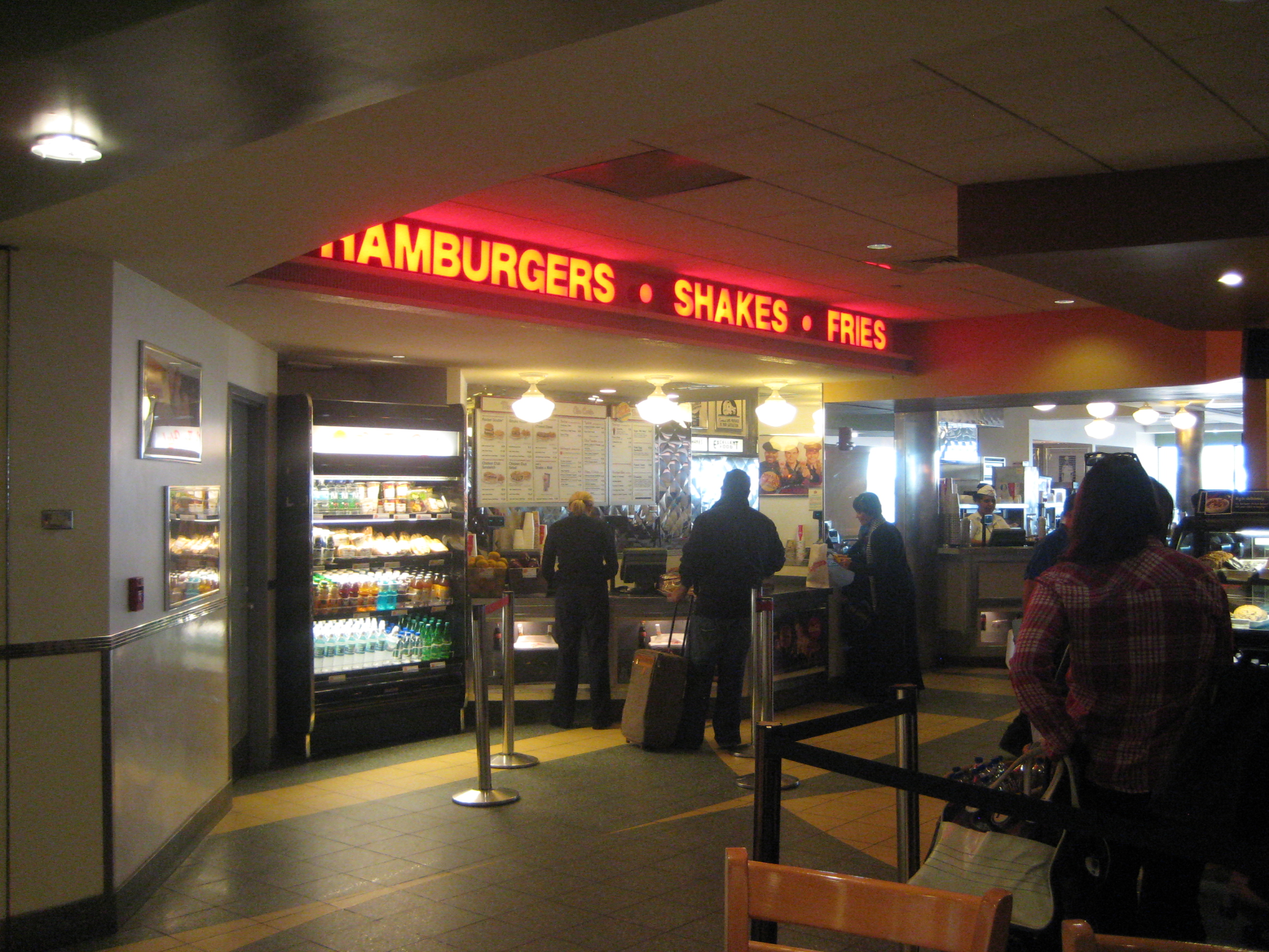 And then, there is airport food. Should you be hungry enough to need sustenance during your trip to the alternate universe, you have just three choices: the convenience store, the food court, or the bar.