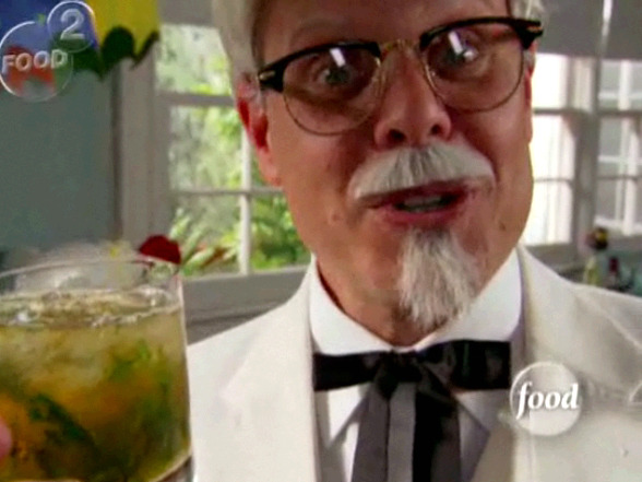 …which works out really well because Ina can’t make it to the party (something about a flower arranging class with her gay friend Paul), so Jeffrey’s new date is Alton Brown, who is going as Colonel Sanders.