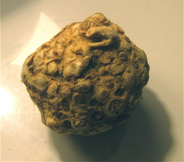 Ever wonder what this gnarled looking mess is, in the bins on the green’s wall in your supermarket? It is celeriac (or celery root), a kind of celery that is grown as a root vegetable. It has the same fresh, grassy taste as celery, but a parsnip-like texture. Despite its awkward appearance it’s easy to prepare- all you need is a vegetable peeler. It has a mild flavor that is often used to complement soups, gratins, or – if you are looking for something to eat with your leftover short ribs – mashed potatoes.