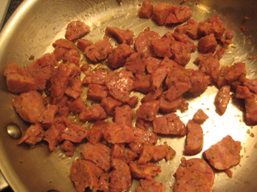 1 lb pre-cooked sausage (whatever kind you want), casings removed and chopped