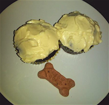 The cakes did turn out better than my vegan attempt – I adjusted the cooking time, though I still wish I’d taken them out a minute earlier. I was also mystified that the store-bought cupcakes seem to have chocolate bits in them, but these did not. I even re-read the recipe to make sure I hadn’t missed something (stranger things have happened), but nope. Puzzling.
