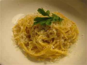 There are varying opinions on what fat to include in the recipe, if any. You can use butter, olive oil, cream, none of the above, all of the above. Some recipes use just Pecorino Romano cheese (the most traditional), some use both Pecorino and Parmigiano Reggiano. Personally, I’m not crazy about Romano, whereas Parmigiano is one of my top ten favorite foods.