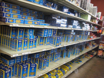 The dry grocery section of Penn Mac is stuffed with pasta noodles- every brand, shape and size. There’s an eight foot section of olive oil, boxes of salt cod, and jarred tomato sauce for every taste. Vats of olive oil – pour your own- sit around the corner next to the fresh pasta counter. Multiple varieties of imported cookies, pannetone, panforte, and torrone are all represented.
