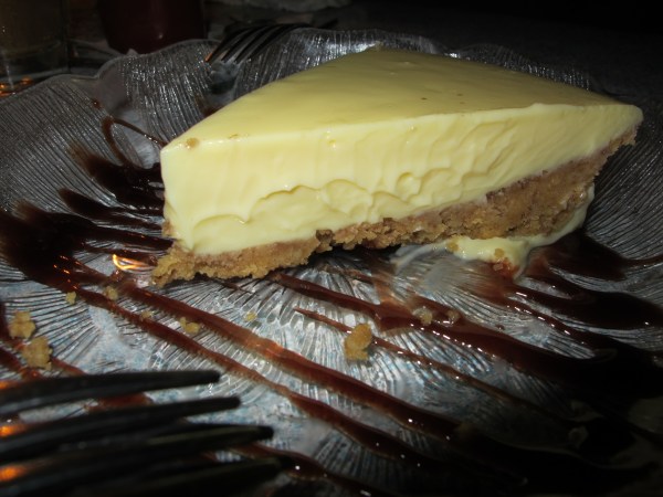 With one caveat: though I’m not advocating over-embellishment when it comes to the accompaniments category, a bit of whipped cream would have tempered the sweetness and provided another texture differential. As it was, the only extra on this plate was a drizzling of strawberry sauce on the plate, which was good but would have been better enjoyed served over the pie, rather than under.
