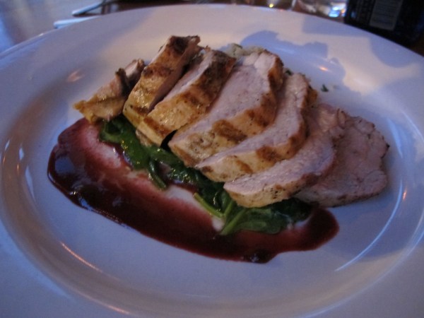 One of my favorite aspects of The Ashmont is that, amidst the steaks and pastas, they do have healthier options on the menu. And this time, I actually tried one- a turkey burger. Described as “righteous” on the menu, the burger was served with avocado mousse, arugula, cranberry relish, and roasted sweet potato wedges. The mousse and relish gave the burger rich, layered flavor, though I wished the size of the patty was in better ratio to the bun. I hate having extra bits of bun. The sweet potato wedges had a silky texture that made them feel decadent without actually being fattening. And, while I didn’t actually taste another lighter option – the pork loin special (served with couscous, spinach, and a wine reduction) – it certainly looked delicious.
