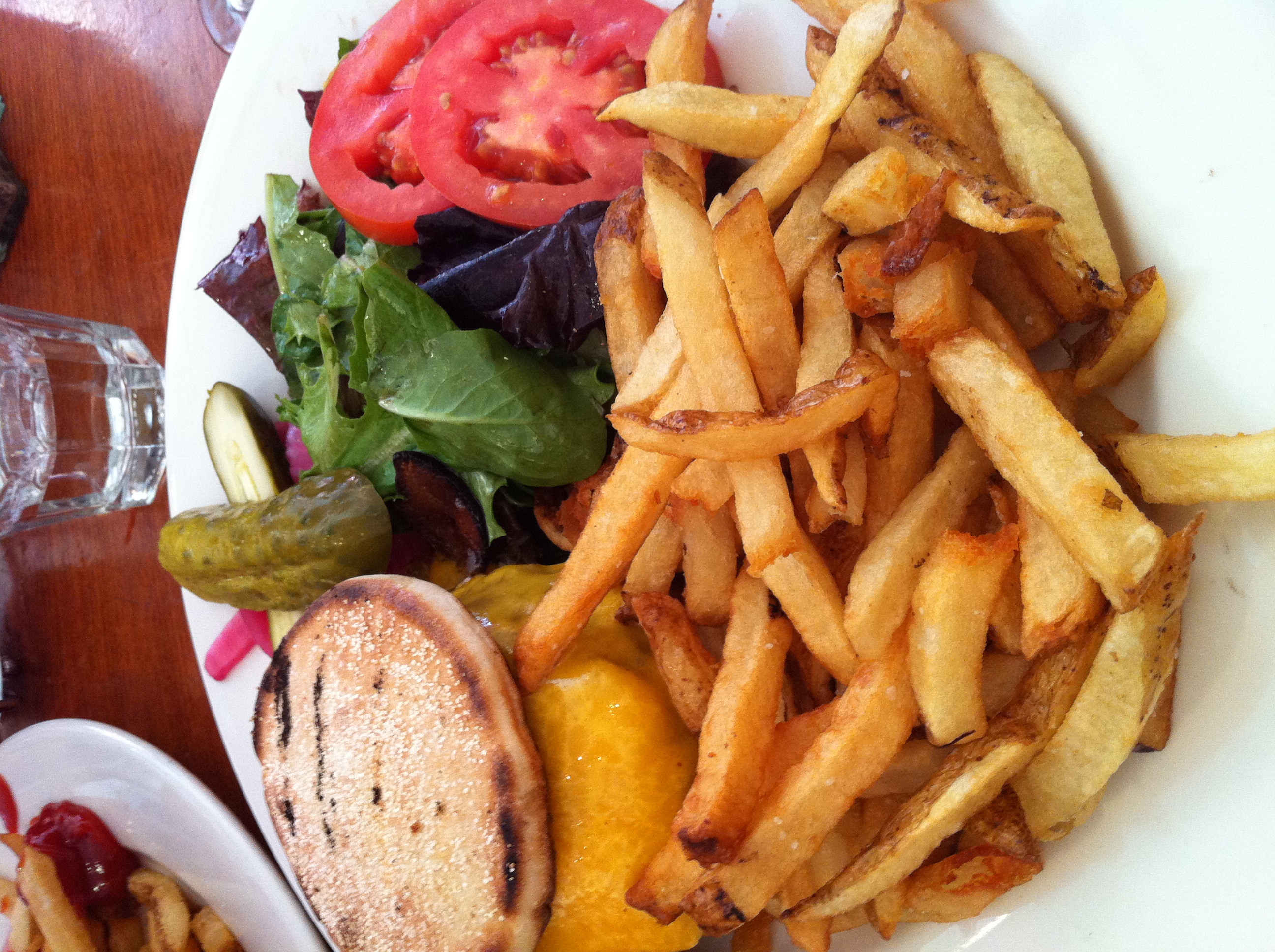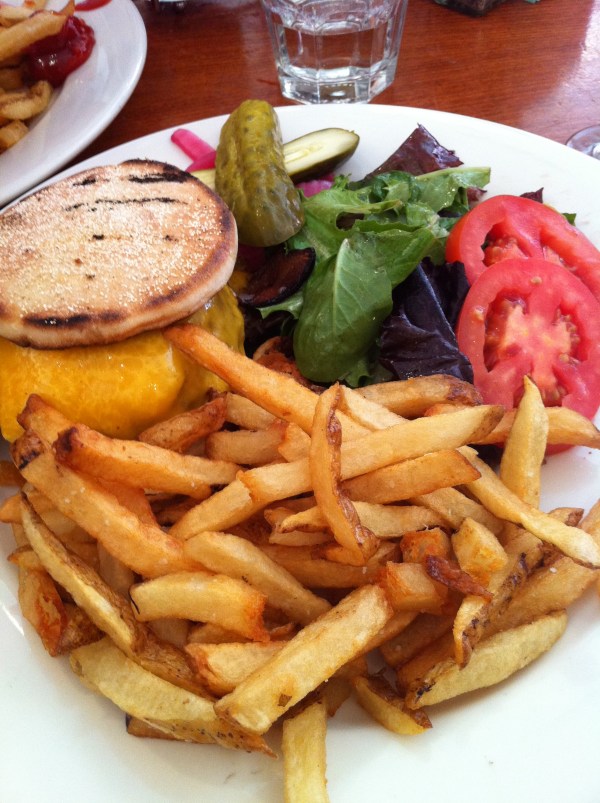 We had brunch at Cornelia’s last weekend on a brief trip into the city, and walked right in at 12:30 on Saturday afternoon. While the prix fix menu looked like a deal, we chose Morrocan Hummus with Pomegranate Reduction and Bistro Burgers with bacon instead. The hummus was thick and rustic, not as smooth as store-bought, and the touch of sweetness from the reduction was genius.  The burger was served on a grilled English Muffin (something I used to think was unique to Massachusetts), and the fries, though a little thicker than most bistro frites, were perfectly greasy, crispy, and not mealy. I particularly appreciated that the plate came with salad as well – a good side salad always makes me feel better about consuming copious amounts of beef and potatoes.