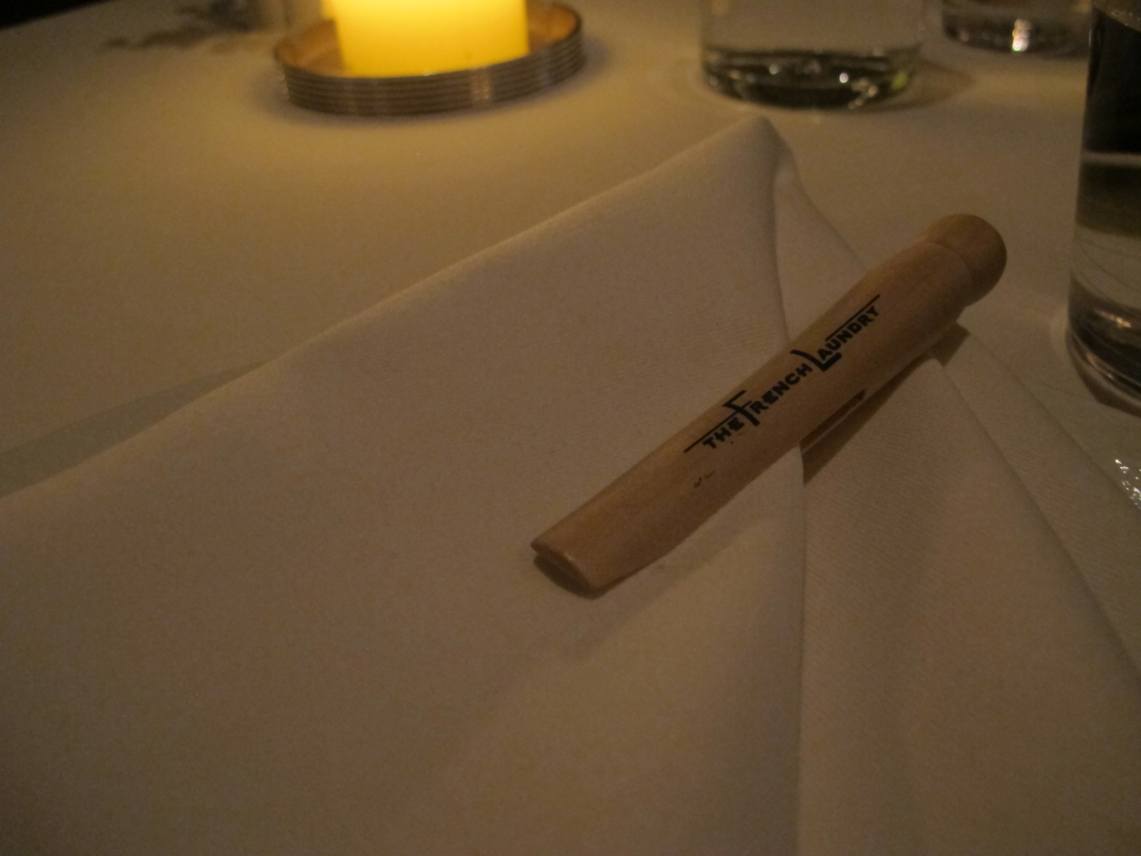 If you are expecting an ultra atmosphere at The French Laundry, you won’t get it. The garden is tasteful, the foyer is lovely, the tables are nicely dressed in plain white table cloths with clothespins clutching the napkins. As we walked to our table for two upstairs, I noted that the restaurant really does feel like an old residence made over into an upscale yet cozy restaurant. If you want ultra, just want until service starts.