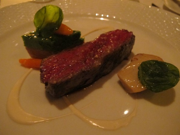 6. Snake River Farms Calotte de Boeuf Grillee with Bone Marrow “Pudding,” Spinach Subric, Matsutake Mushrooms, Nantes Carrots and Sauce Bordelaise. It was at this point in the meal when I started to feel euphoric. I’ve heard about runner’s highs, they say that if you eat extremely spicy food you feel a certain thrill. But it’s perfectly cooked beef that instills rapture in Sliced Bread.