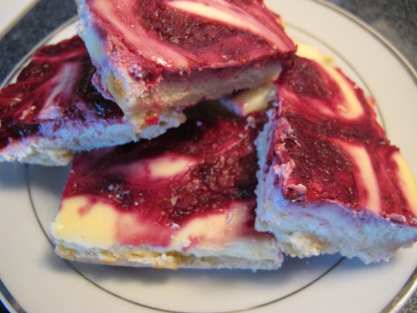 The filling, however, was great – replacing half of the cream cheese with non-fat Greek yogurt was a pretty genius move. The recipe called for fresh or frozen cherries, but I used blackberries instead, and halved the amount of lemon juice. Here is my (improved) version of the recipe, which uses the crust from my Sweet Potato and Orange Cheesecake Bars.
