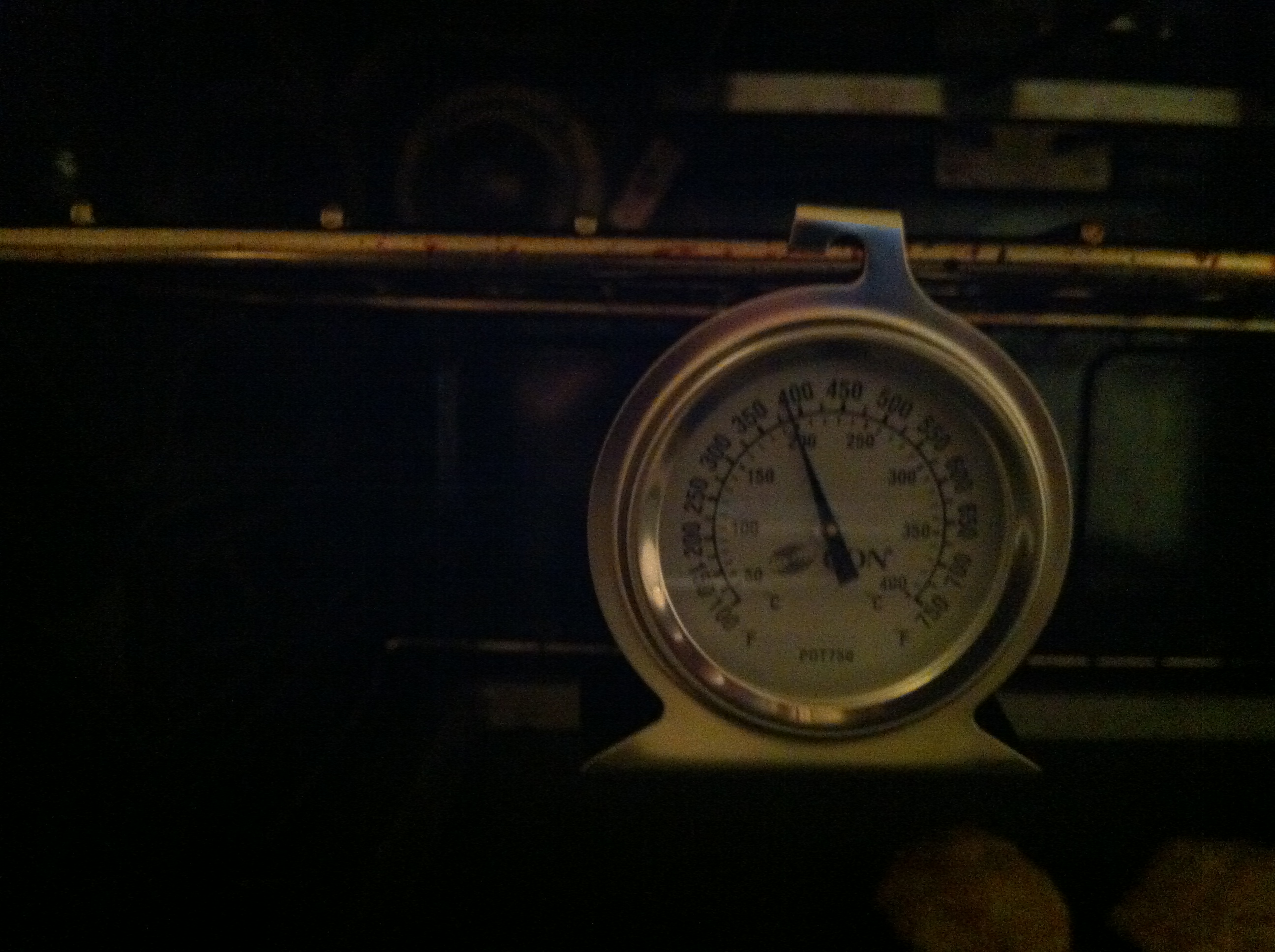 When I read the back of my brand new oven thermometer, I thought the warning “It is not uncommon for ovens to be inaccurate over 50 degrees!” was pretty inflammatory. But it turns out that my oven is 45 degrees off. When pre-heated to 350, the thermometer read 305. Yikes.