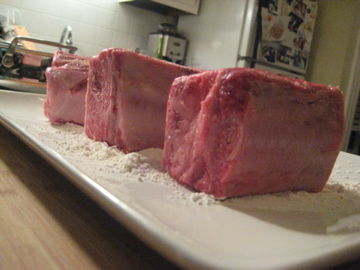 I’ve been wanting to make short ribs for a while, but haven’t had the time to really investigate how to cook them properly. When I finally did a little research I realized it’s not that complicated- there is just a lot of waiting around time. The recipe below, a conglomerate of my short rib studies over the past few days, takes about 3 hours to prepare- it’s best suited for a lazy Sunday or a night when you don’t think you’ll get around to eating until 10pm.