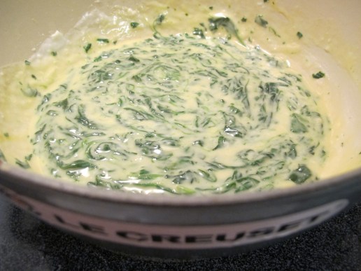We never had creamed spinach growing up, presumably because my mother realized spinach is supposed to be a healthy food, not deliciously smothered in butter and eggs. Unfortunately, I’ve discovered it is quite easy to prepare, so it may make more and more appearances on my family’s Christmas table.