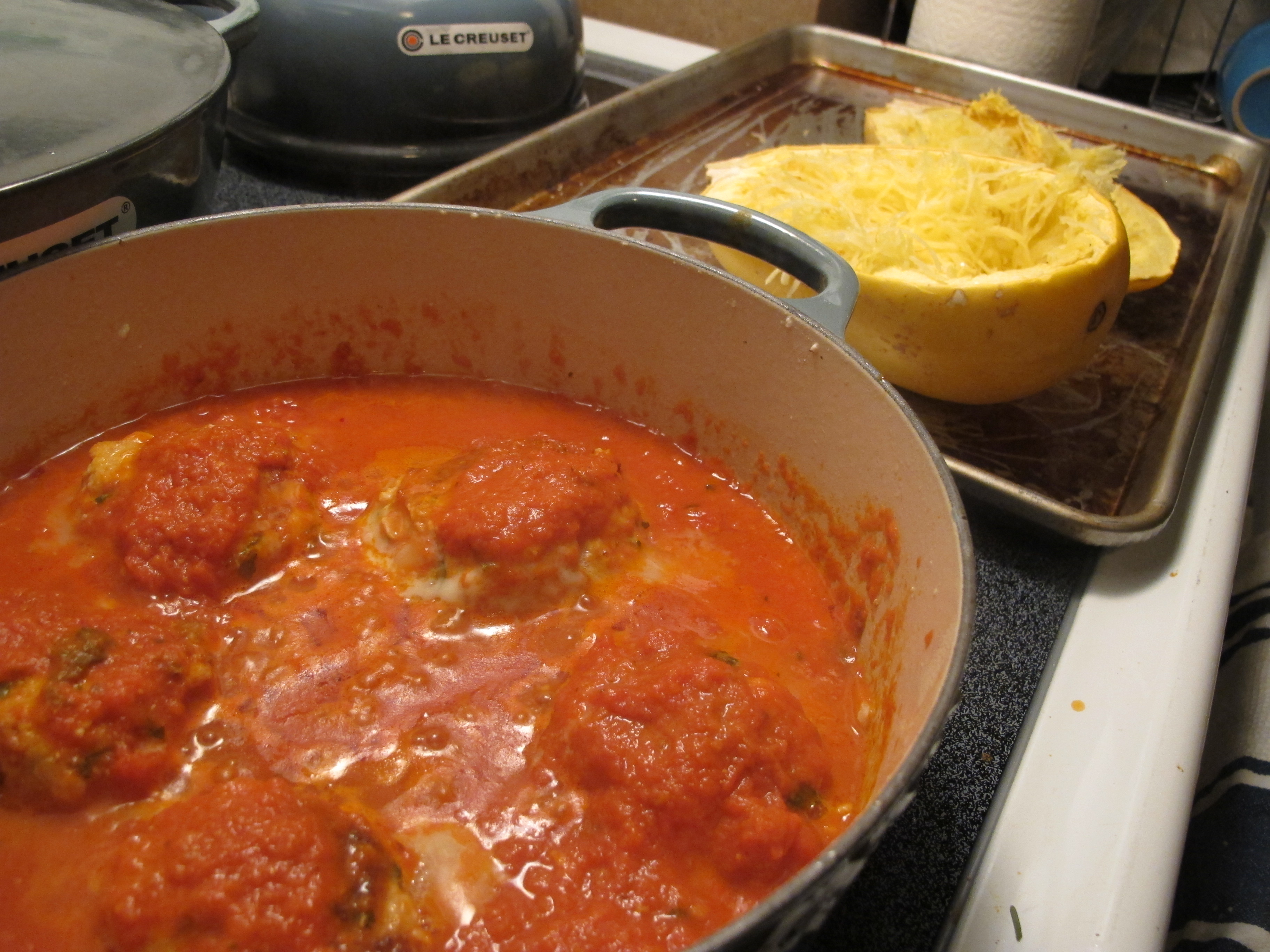Which brings me to Day 6 of Gluten Free, and being just a tiny bit cranky. It was today that I really started eyeing the candy jar at work and wishing I could have a piece of pizza for lunch. So I decided to try a Spaghetti Showdown for dinner- the oft mentioned Spaghetti Squash v. the relatively new discovery of Shirataki noodles.